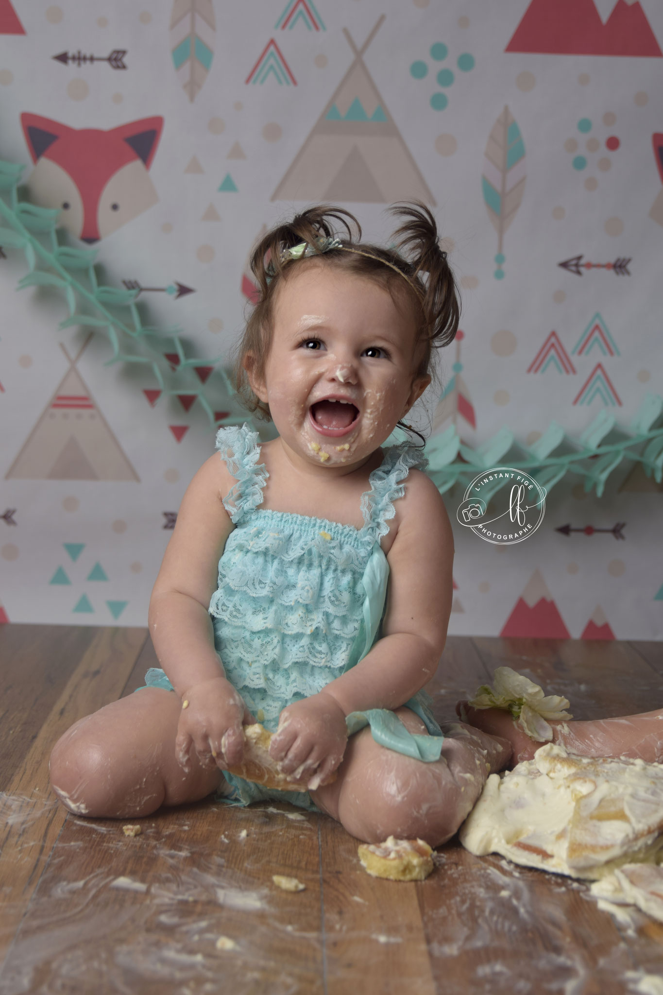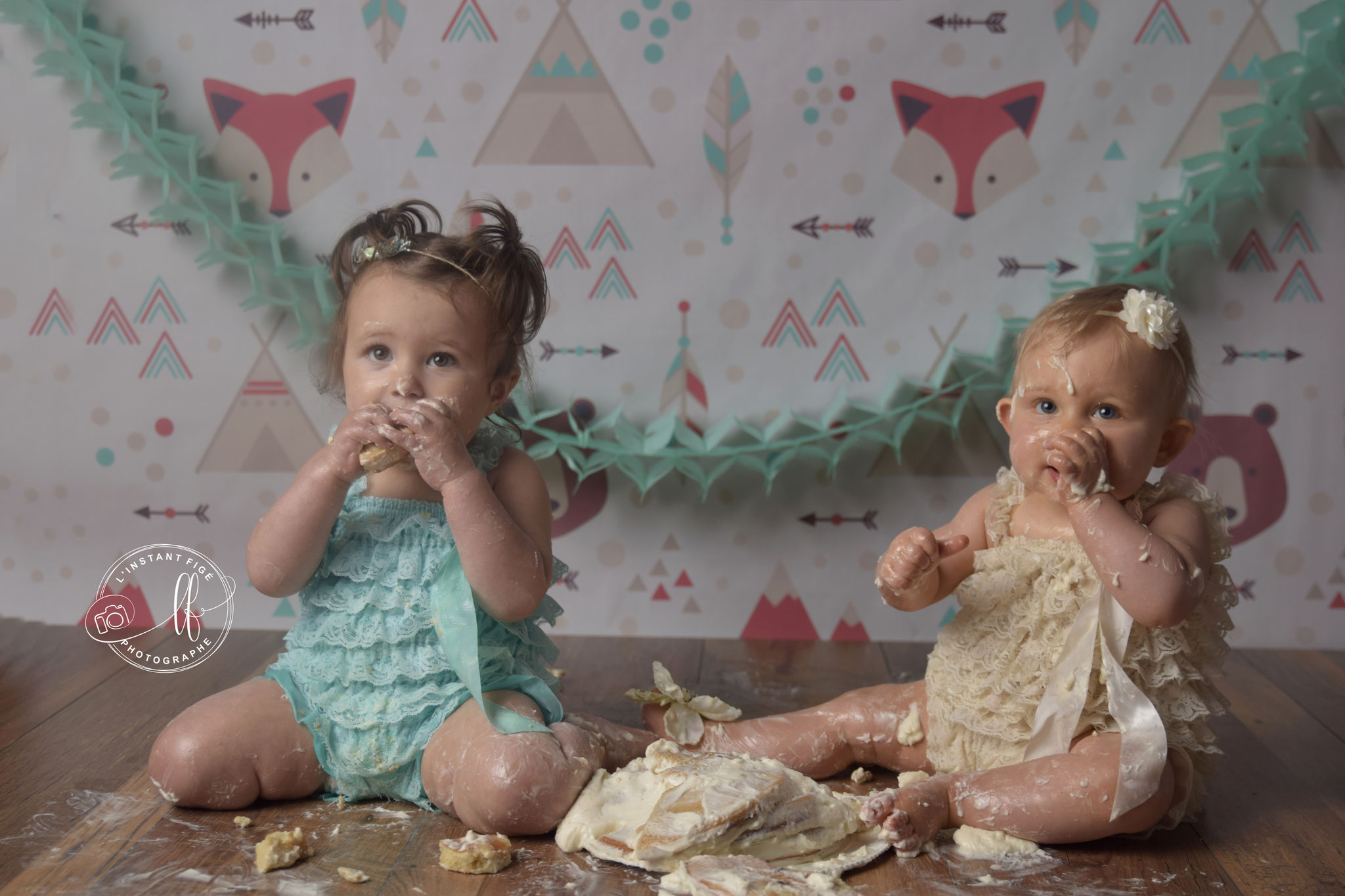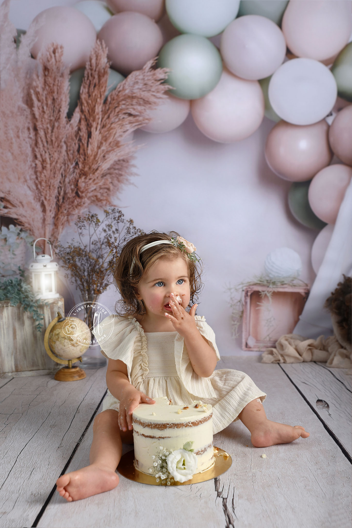 Une séance anniversaire avec un décor unique, avec un Smash cake (détruire le gâteau) réalisé en fonction du thème par ma partenaire Eviepatisserie.